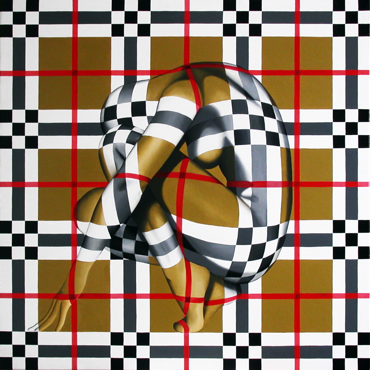At the beginning I used to paint to complete the objects that I created, with the same colours and shapes. Now the style is changed, I always start from human figure, sometimes I use models, others I invent poses and than I add the geometrical shapes that perfectly fit the paint.